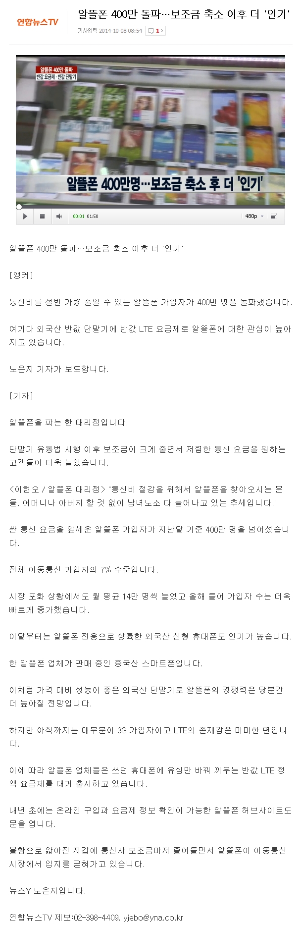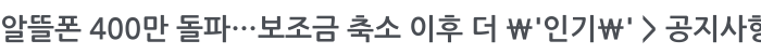 알뜰폰 400만 돌파…보조금 축소 이후 더 '인기' 페이지 정보 작성자 관리자 작성일14-10-08 10:58 조회4,742회 댓글0건 이전글 다음글 목록 본문 알뜰폰 400만 돌파…보조금 축소 이후 더 '인기' 댓글목록 등록된 댓글이 없습니다. 이전글 다음글 목록